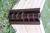 L'eco-lien présente quatre trous permettant de le fixer à la planche de bois. La face ayant les trous devra se trouver à l'intérieur du Jardi-Patio pour une meilleure esthétique. L'eco-lien maintient la planche sur toute sa hauteur pour assurer une grande stabilité même si plusieurs étages de planches sont empilés. Les planches de mélèze fournis dans le kit Jardi-Patio ont une épaisseur de 24mm !